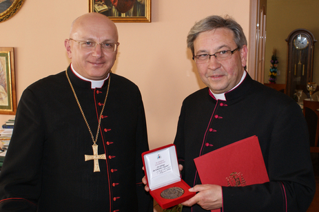 Na zdjęciu podczas wręczenia Medalu Prymasowskiego "Za zasługi dla Kościoła i Narodu".