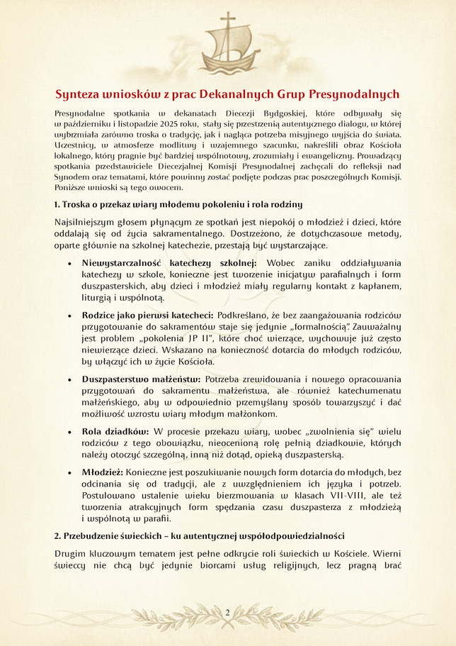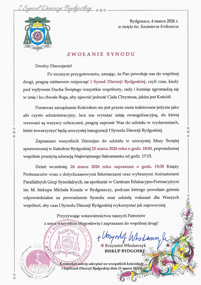 I Synod Diecezji Bydgoskiej - Parafia św. Mikołaja Biskupa w Bydgoszczy-Fordonie